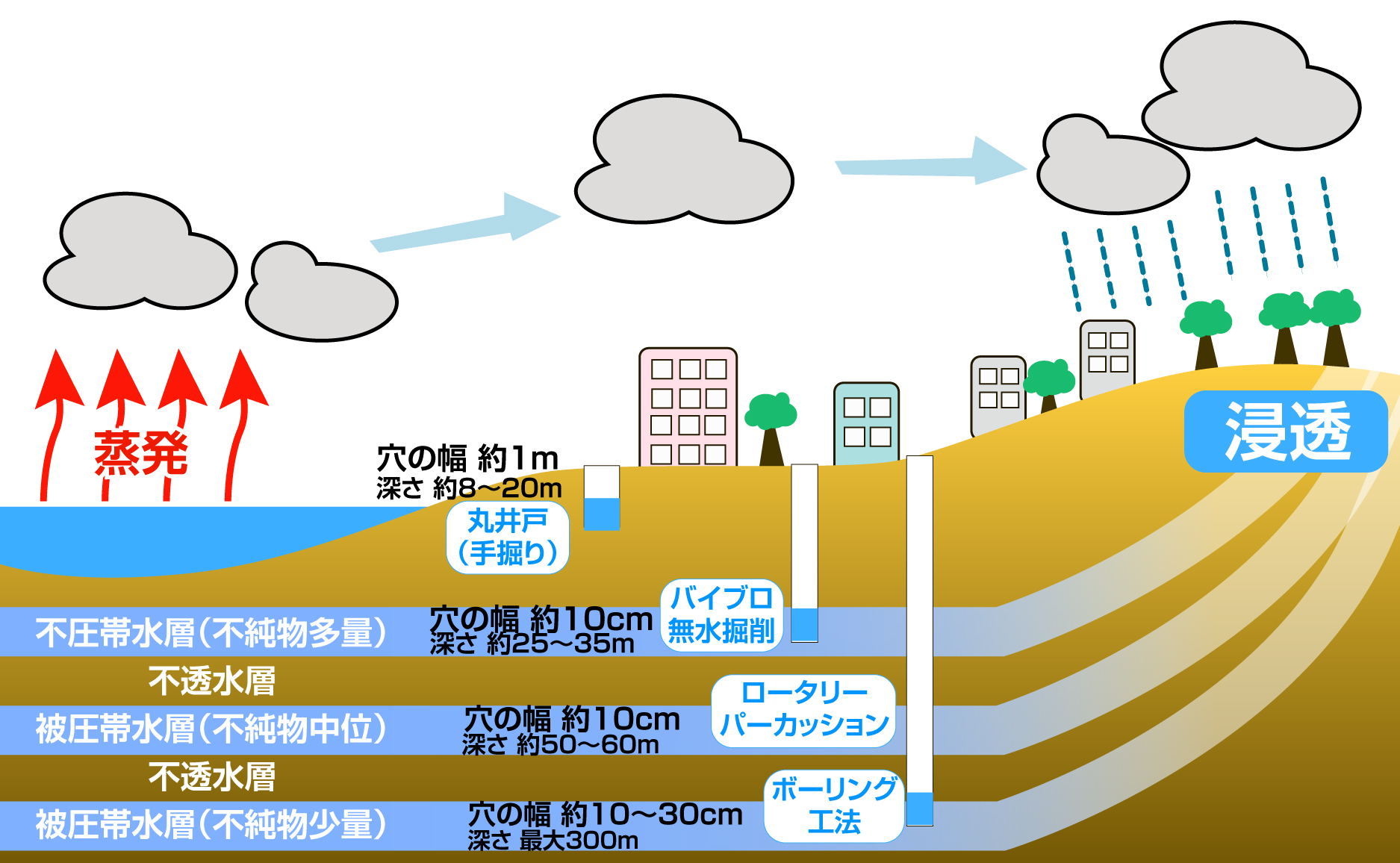 万が一水が出ない場合は掘削料金は頂きません。また、井戸からの水には水道料金はかかりません。